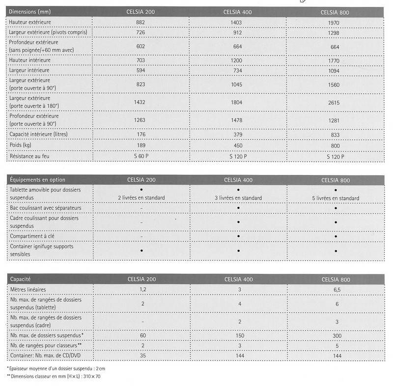 L'armoire ignifuge CELSIA est prévue pour le classement des dossiers suspendus, classeurs, et tout autre document sensible . Elle se décline en plusieurs volumes .