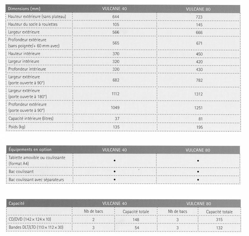 Le modèle VULCANE est parfait car il assure une protection incendie certifiée d'une heure pour vos différents supports et données numériques (CD et DVD).