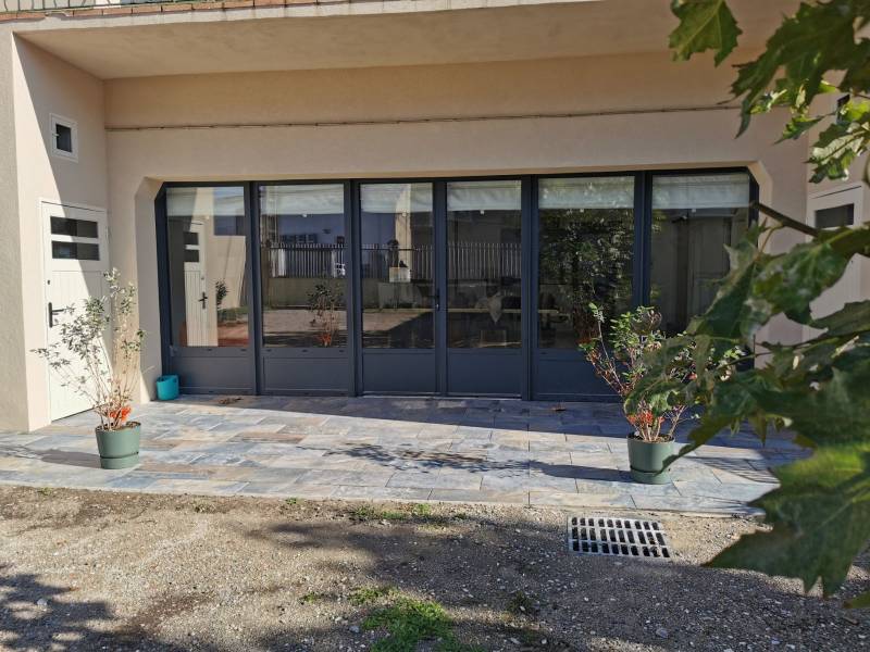 Notre cliente avignonnaise souhaitait rénover une ancienne bâtisse et y installer ses bureaux. Pour cela, elle désirait une grande devanture de style atelier pour gagner de la lumière, mais voulait toutefois rénover pour augmenter l'isolation de ses locaux.