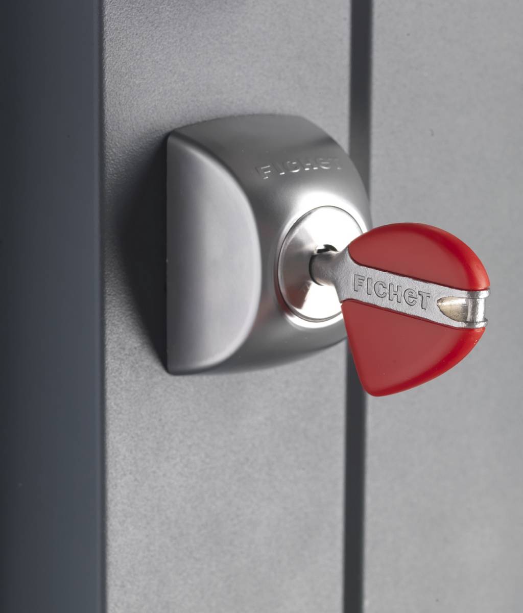 La serrure Fichet Alicea est équipée du cylindre Fichet F3d ou Fichet 787. M de nouvelle génération ; chaque serrure est livrée avec quatre clés non reproductibles et une carte de propriété.